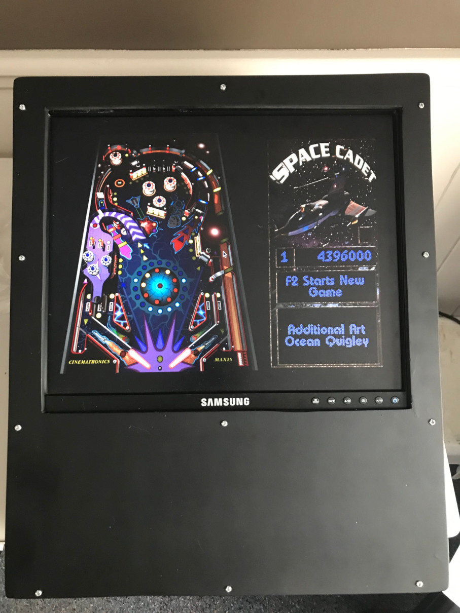 En fait, la machine roule sur un Raspberry Pi, un micro-ordinateur, et, contrairement aux autres machines qui utilisent le moteur de jeu Visual Pinball pour simuler diverses tables de billard électrique, ma machine peut jouer aux trois tables contenues dans le jeu FullTilt! Pinball sorti en 1995, incluant la fameuse table Space Cadet, que vous pouvez voir sur ces images! De plus, le cabinet contient des contrôles réalistes de machines à bille pour jouer proprement au jeu, dont 2 boutons sur les côtés pour actionner les flippers, un pour projeter la balle, ainsi que deux pour démarrer une partie et la mettre en pause respectivement.