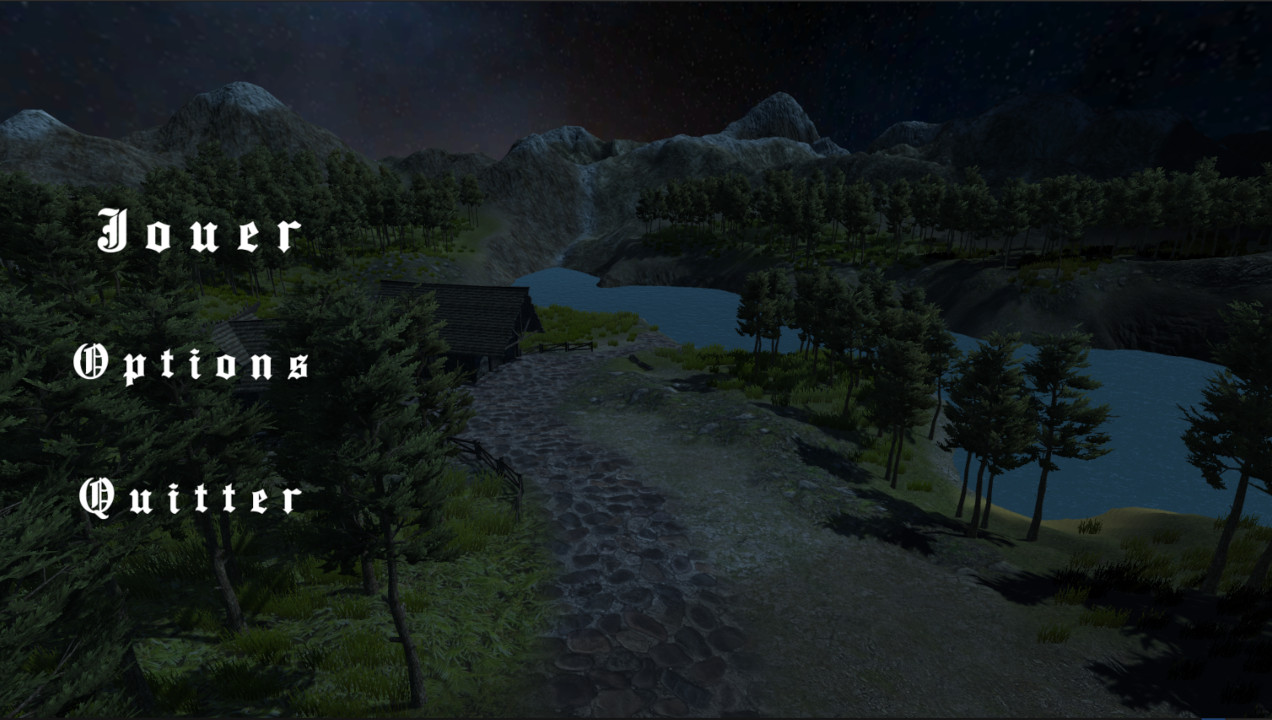 Mon tout premier projet que j'ai fait avec Unity est un menu de jeu. C'était durant mon cours de Développement de jeu vidéo dans ma technique que j'ai créé l'environnement de jeu ainsi que l'interface.